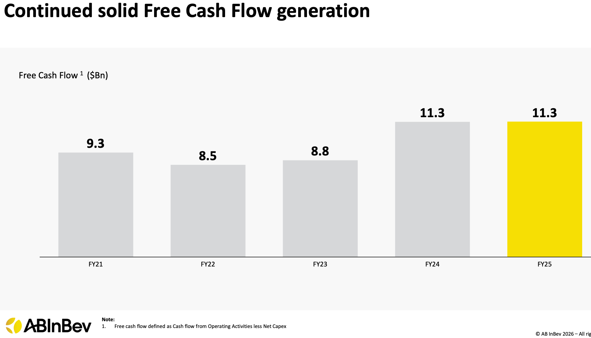 Free cash flow remained robust at $11.3 billion in FY25, matching the prior year’s strong performance and demonstrating consistent cash generation capabilities despite macroeconomic pressures.