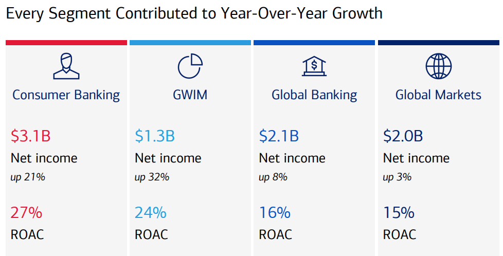Bank of America (NYSE: BAC) delivered broad-based growth in Q1 2026, with all four segments contributing to higher earnings and reinforcing the strength of its diversified model.
