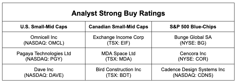 Whether you’re eyeing small-to-mid cap opportunities in the U.S. and Canada or want to stick with trusted S&P 500 blue-chip picks, this list highlights stocks that experts believe could outperform.