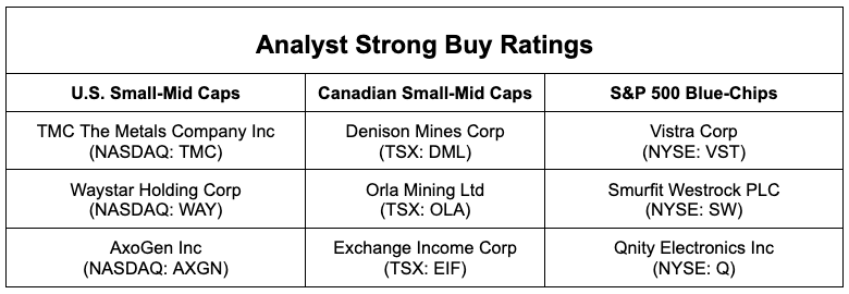 Whether you’re eyeing small-to-mid cap opportunities in the U.S. and Canada or want to stick with trusted S&P 500 blue-chip picks, this list highlights stocks that experts believe could outperform.