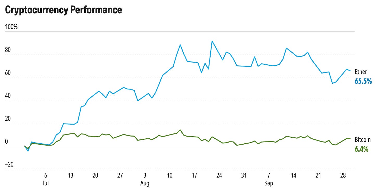 Bitcoin rose 6.4% in Q3, a modest gain compared to its 30% surge in Q2, which was fueled by optimism over crypto-friendly U.S. regulations. It peaked in mid-August at around $123,000 per coin. Meanwhile, Ether outperformed, jumping 65.5% over the same period. Bitcoin has since broken a new all-time high above $125,000 in early October, marking a strong start to Q4.