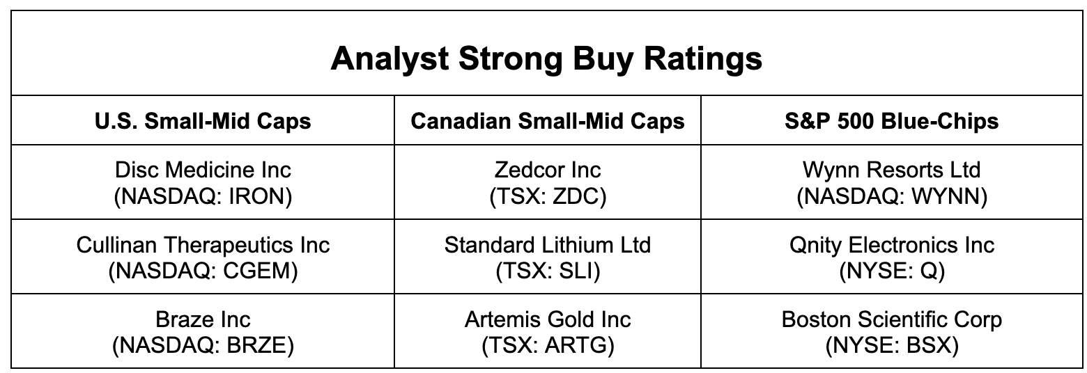 Whether you’re eyeing small-to-mid cap opportunities in the U.S. and Canada or want to stick with trusted S&P 500 blue-chip picks, this list highlights stocks that experts believe could outperform.