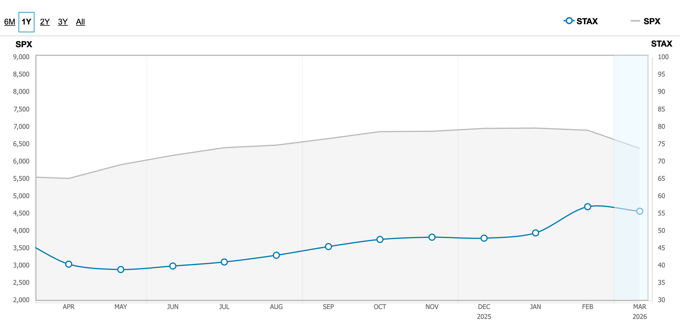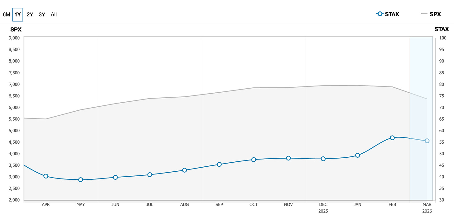 Charles Schwab’s clients grew modestly more bearish in March as the Iran conflict erupted, pushing the STAX 2.23% below February’s peak.