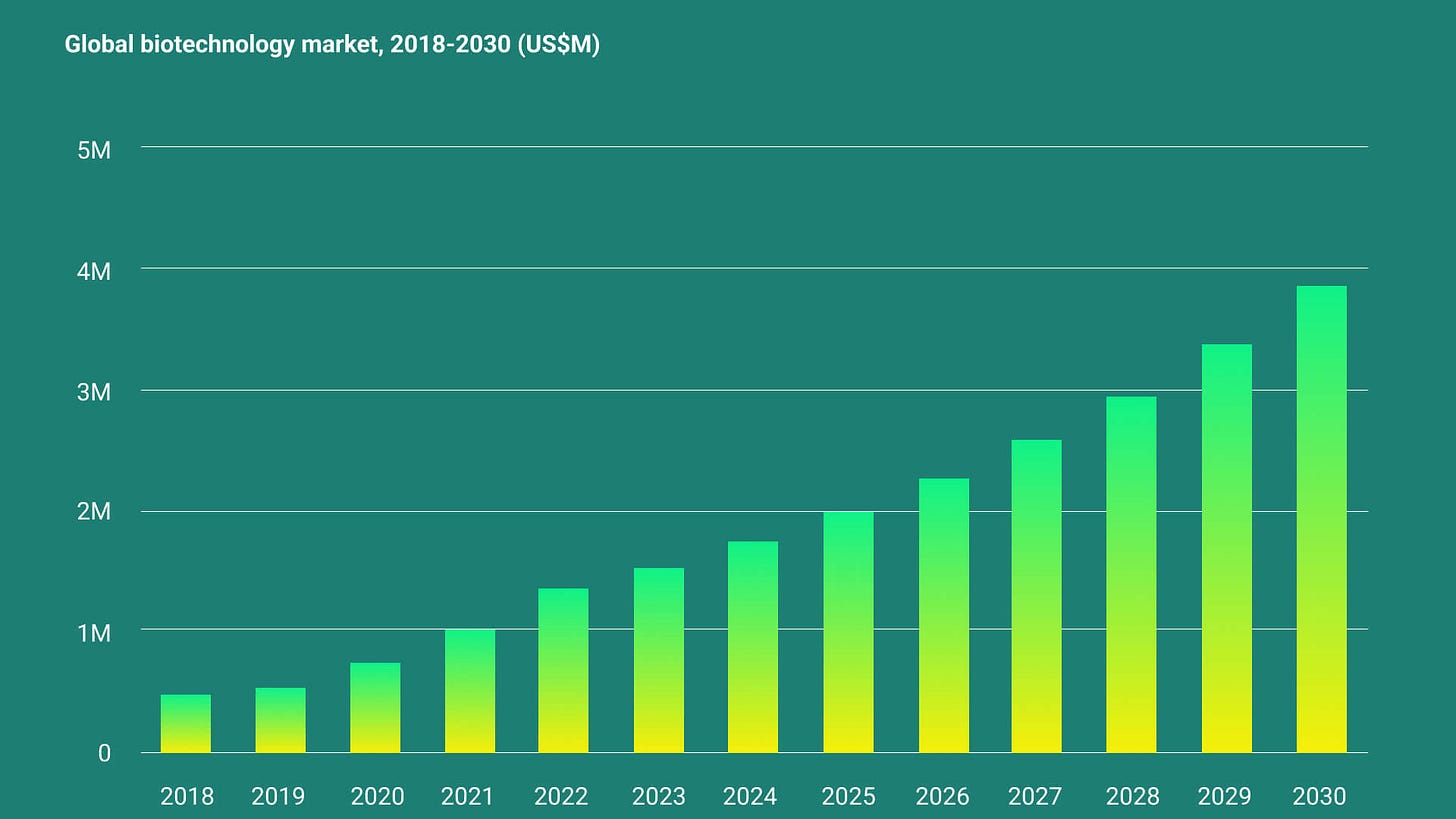 The following diagram illustrates the biotech industry’s expected expansion up to 2030.
