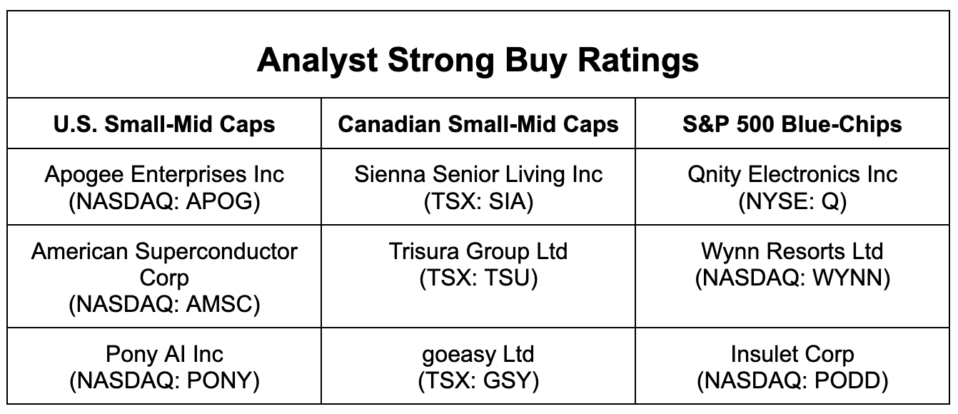 Whether you’re eyeing small-to-mid cap opportunities in the U.S. and Canada or want to stick with trusted S&P 500 blue-chip picks, this list highlights stocks that experts believe could outperform.